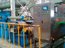 2007年公司通過引進國外先進的靜電涂裝技術,結合國內各類中小型金屬板(帶、絲)冷軋機組的實際應用情況,成功的研發出XCTZ-3型系列金屬板(帶)冷軋靜電涂油機、XCTZ-H101焊絲靜電涂油機、XCTZ-D刀帶靜電涂油機,其高壓力微流量雙流體霧化靜電涂油技術已在國內處于領先地位.每平米0.3克(單面)的涂油量已在實際應用中得到滿意的效果.